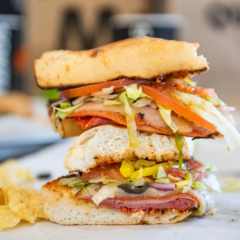 Pepperoni, salami, capicola, ham, provolone, black olives, banana peppers, tomatoes, onions, red wine vinaigrette.
